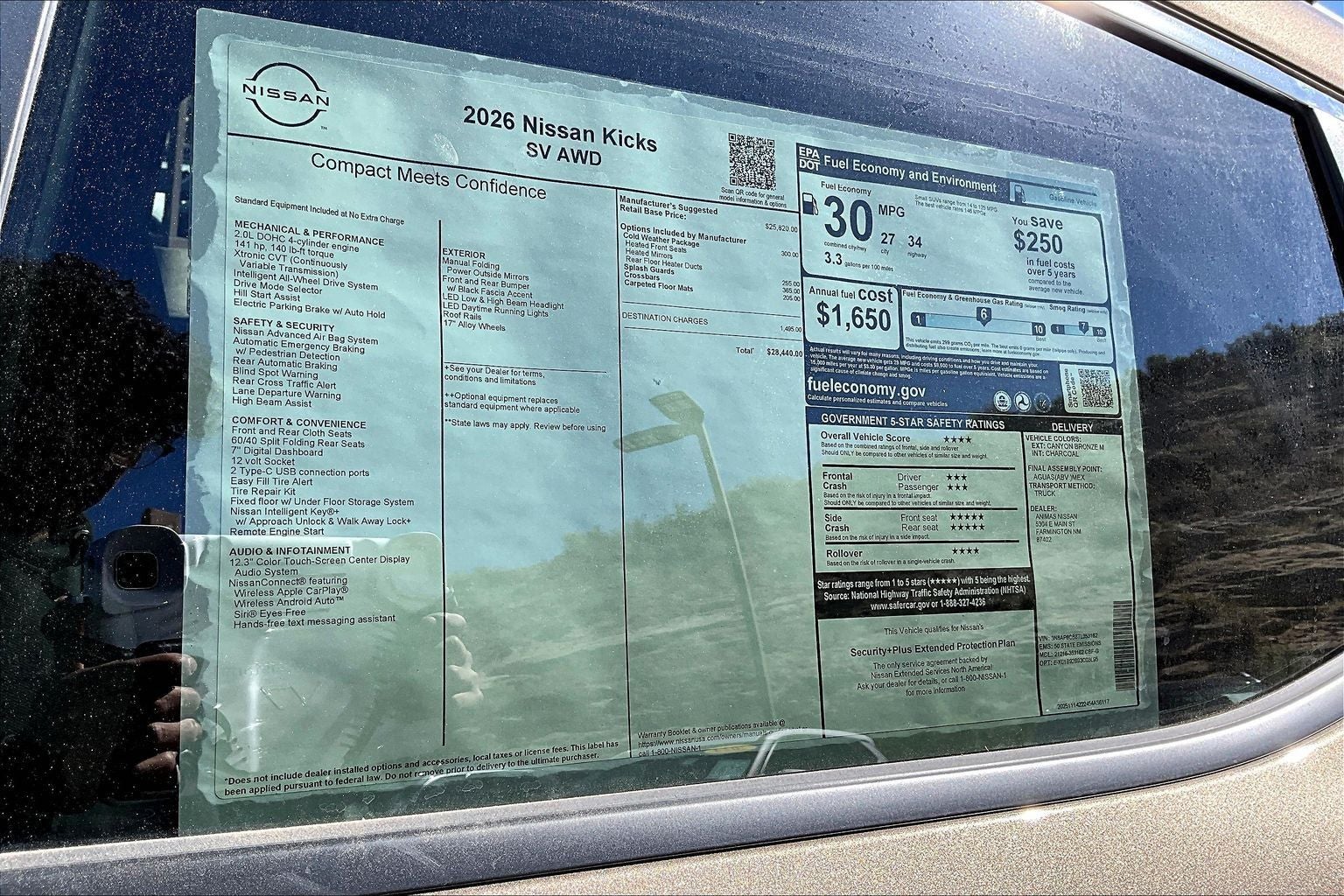 This NEW 2026 Canyon Bronze Metallic Nissan Kicks SV 2.0L DOHC CVT with Xtronic AWD is well equipped and includes these features and benefits: