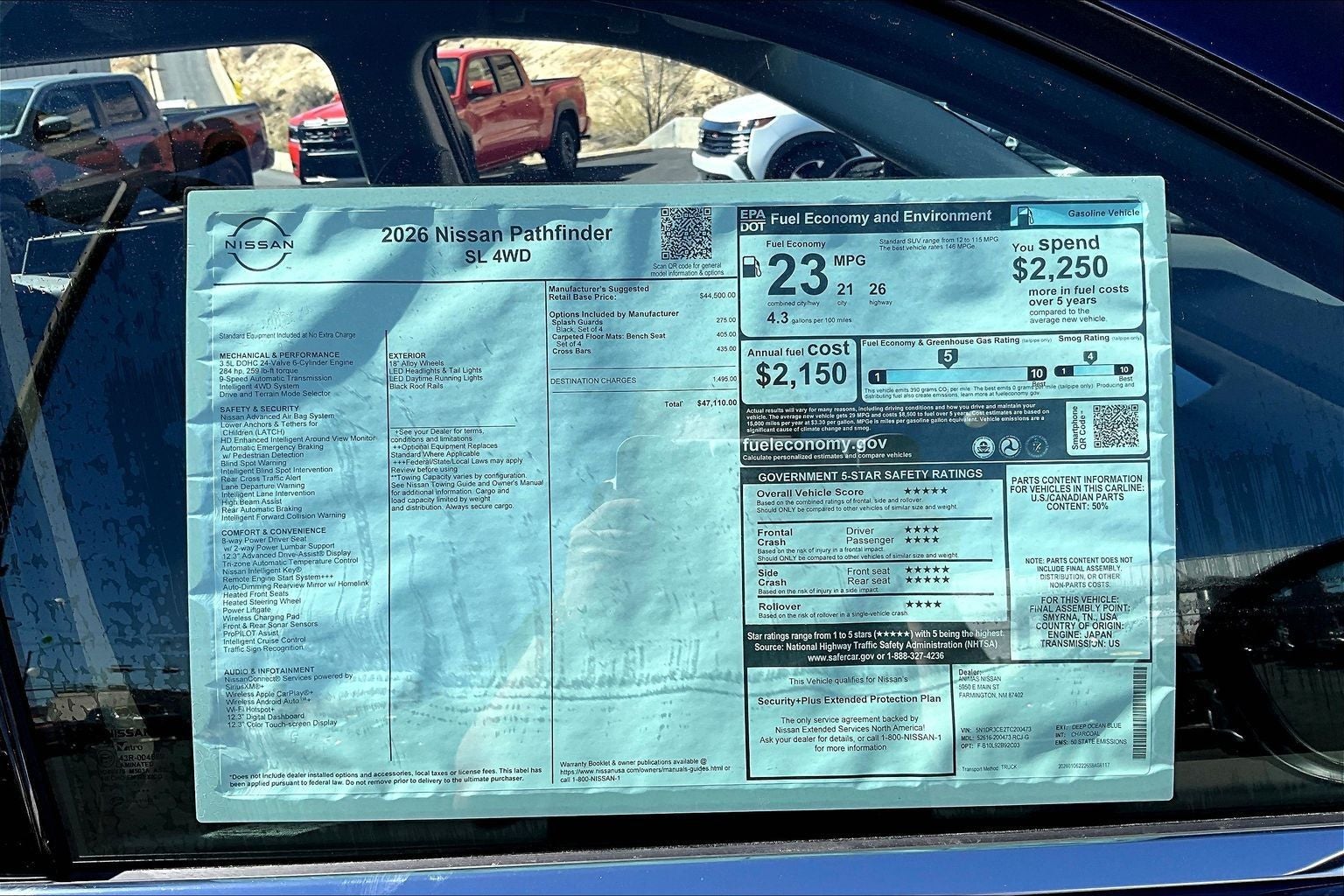 This NEW 2026 Deep Ocean Blue Pearl Nissan Pathfinder SL 3.5L V6 DOHC 9-Speed Automatic 4WD is well equipped and includes these features and benefits: