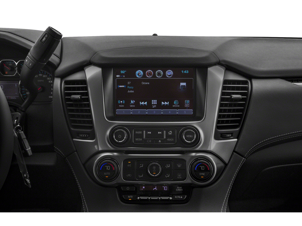 - Audio system, Chevrolet MyLink Radio with 8" diagonal color touch-screen AM/FM stereo with seek-and-scan and digital clock, includes Bluetooth® streaming audio for music and select phones; voice-activated technology for radio and phone; and Shop with the ability to browse, select and install apps to your vehicle. You can customize your content with audio, weather and more; featuring Apple CarPlay and Android Auto capability for compatible phone; 5 USB ports and 1 auxiliary jack